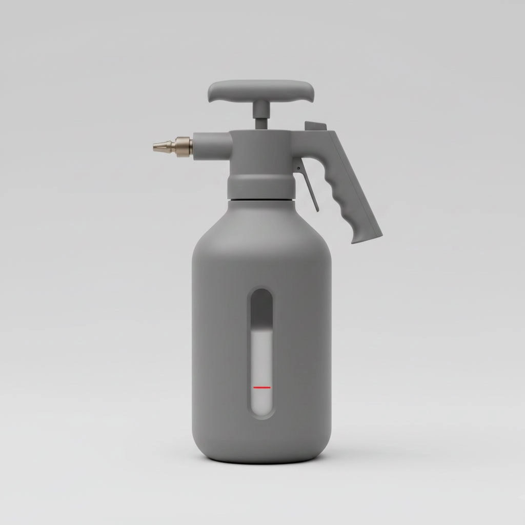 Un atomizador de plástico reciclado de alta durabilidad con sistema de presión, ideal para fumigar o aplicar tratamientos foliares. Produce una neblina ultrafina, perfecta para cubrir uniformemente grandes colecciones de plantas de interior o pequeños huertos. Es más eficiente que un rociador manual y esencial para el cuidado preventivo.