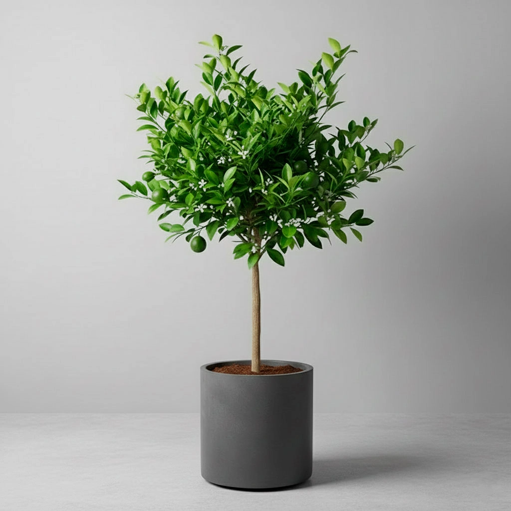 Un pequeño árbol frutal, perfecto para terrazas y azoteas soleadas en Lima. Este Cítrico Enano no solo produce deliciosas limas o mandarinas, sino que sus flores blancas desprenden un aroma increíblemente refrescante. Es un placer sensorial que añade un elemento funcional y gourmet a tu espacio exterior. Está cultivado para prosperar en maceta, lo que facilita su cuidado y lo protege de heladas (aunque raras en Lima). Una pieza premium para los amantes de la jardinería comestible y el diseño.