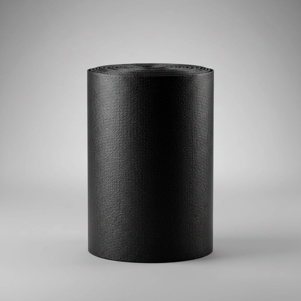 Manta geotextil transpirable de color negro para paisajismo en terrazas o jardines. Ideal para colocar debajo de la grava o la corteza decorativa, previniendo el crecimiento de malezas mientras permite el paso del agua. Un elemento clave para el paisajismo de bajo mantenimiento en Lima.