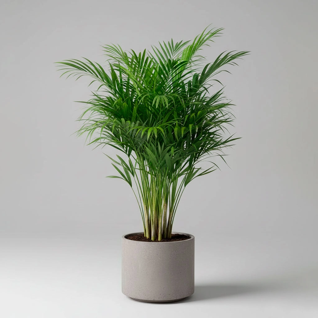 La Palma Kentia es la definición de la elegancia tropical discreta, perfecta para llenar esquinas vacías con luz indirecta en tu sala o hall de oficina en Lima. Sus frondas suaves y arqueadas aportan una textura refinada, creando un ambiente de calma y sofisticación. A diferencia de otras palmeras, la Kentia es famosa por su tolerancia a la sombra y su capacidad de purificar el aire. Es una planta premium que requiere menos humedad que otras tropicales, ideal para un mantenimiento medio. Si buscas un toque de jungla de lujo sin complicaciones, esta es tu mejor elección.