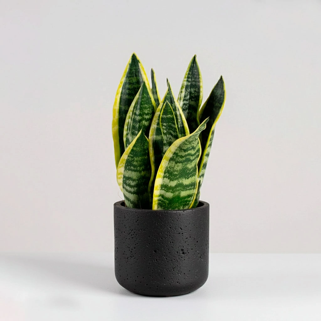 Una Sansevieria compacta y de hojas anchas, con un crecimiento más bajo que la variedad común. Ideal para escritorios, mesitas de noche o estantes. Aporta la misma resistencia y capacidad purificadora de aire que la Sansevieria tradicional, pero en un formato más contenido.